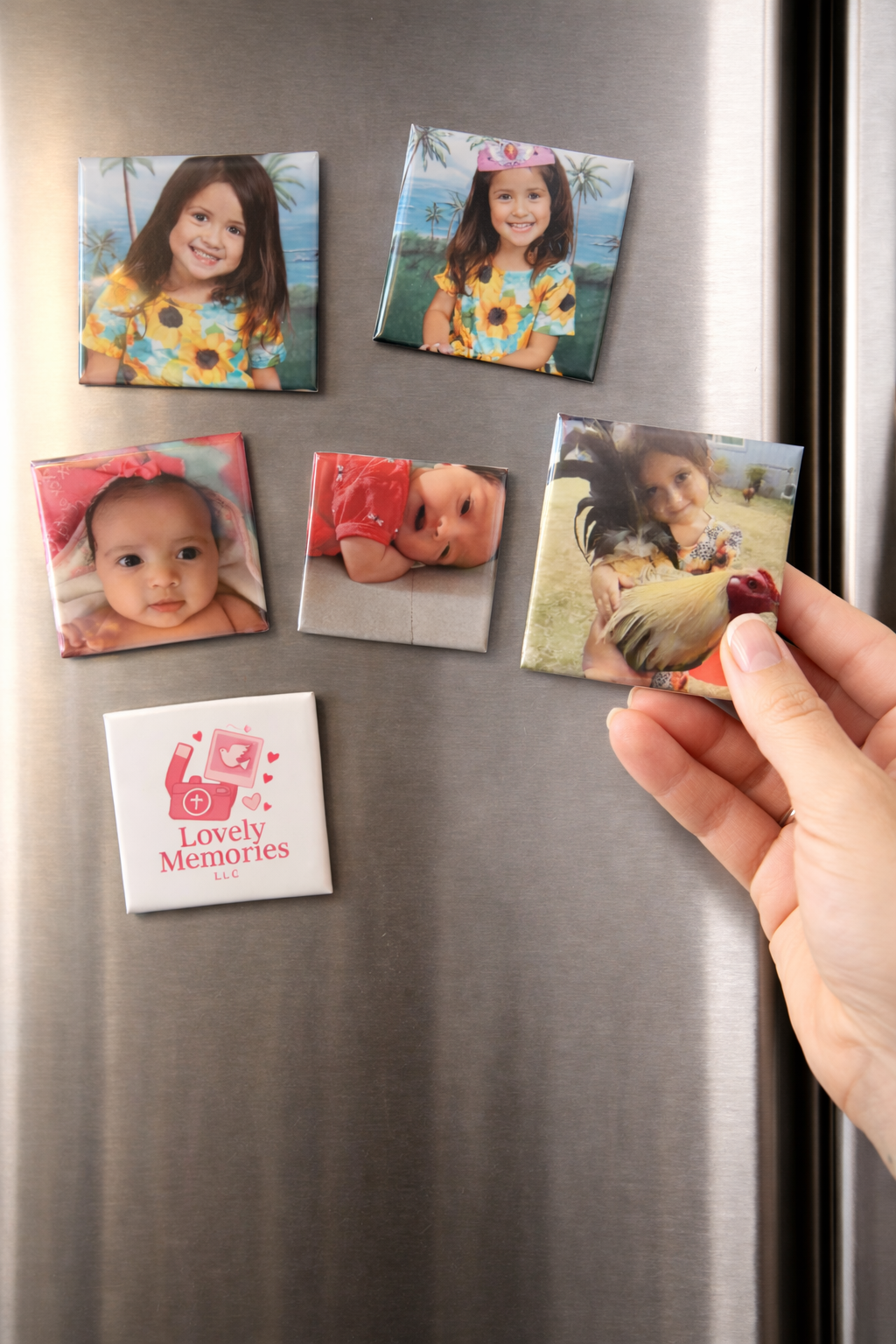 Our custom photo magnets are crafted with care and quality in mind. Each magnet is printed on premium glossy photo paper to ensure vibrant, high-resolution images, then pressed using a professional button maker for a clean, durable finish.